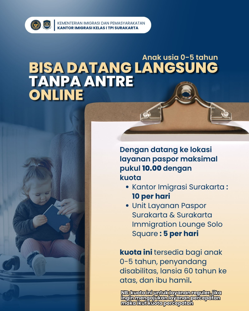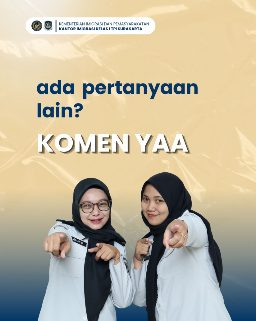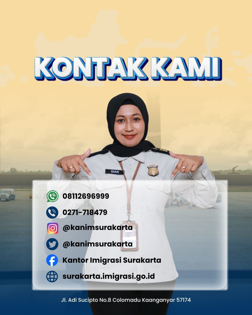 Sahabat Mido, sebagai instansi berpredikat Wilayah Bebas dari Korupsi, Kantor Imigrasi Surakarta sangat mengapresiasi Sahabat Mido yang menjalankan proses layanan keimigrasian sesuai aturan yang berlaku. Mido juga sangat mengapresiasi Sahabat Mido yang melaporkan jika ada upaya pungli maupun gratifikasi dalam pemberian layanan keimigrasian.