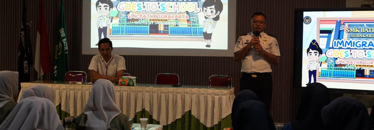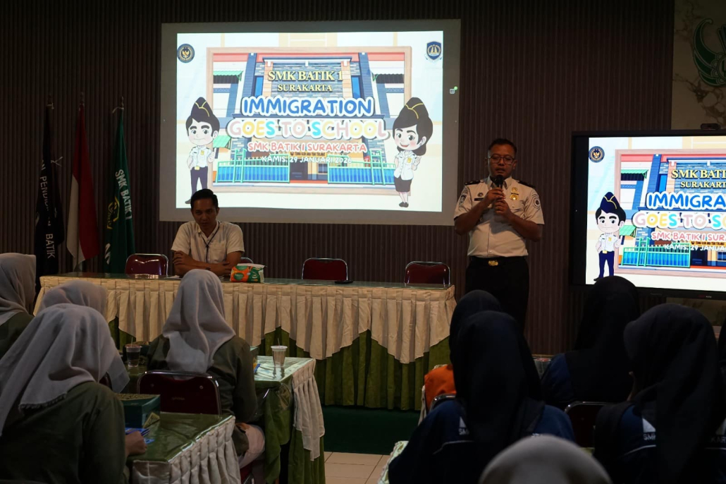 Surakarta — Kantor Imigrasi Kelas I TPI Surakarta menggelar Sosialisasi Keimigrasian dan Pencegahan Tindak Pidana Perdagangan Orang (TPPO) di SMK Batik 1 Surakarta, Kamis (29/1/2026). Kegiatan yang berlangsung di Aula SMK Batik 1 Surakarta tersebut diikuti oleh siswa dan guru sebagai upaya meningkatkan pemahaman generasi muda terhadap layanan keimigrasian serta kewaspadaan terhadap TPPO.