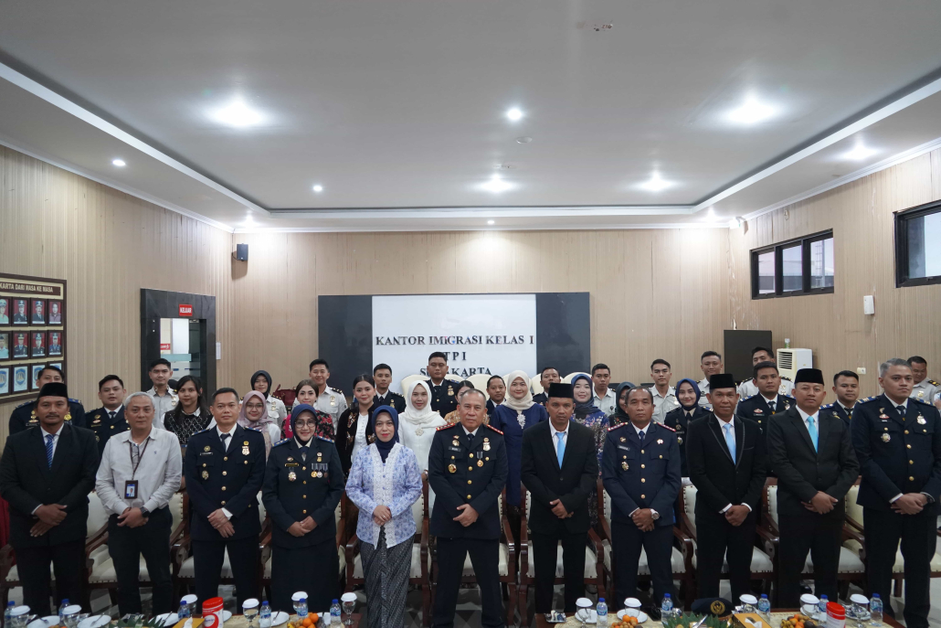 Kantor Imigrasi Kelas I TPI Surakarta menggelar kegiatan syukuran dalam rangka memperingati Hari Bhakti Imigrasi (HBI) ke-76 pada Senin (26/1/2026). Kegiatan yang dilaksanakan secara sederhana di Aula Kantor Imigrasi Surakarta ini diikuti oleh seluruh jajaran pegawai sebagai bentuk ungkapan rasa syukur atas perjalanan panjang pengabdian Imigrasi kepada bangsa dan negara.