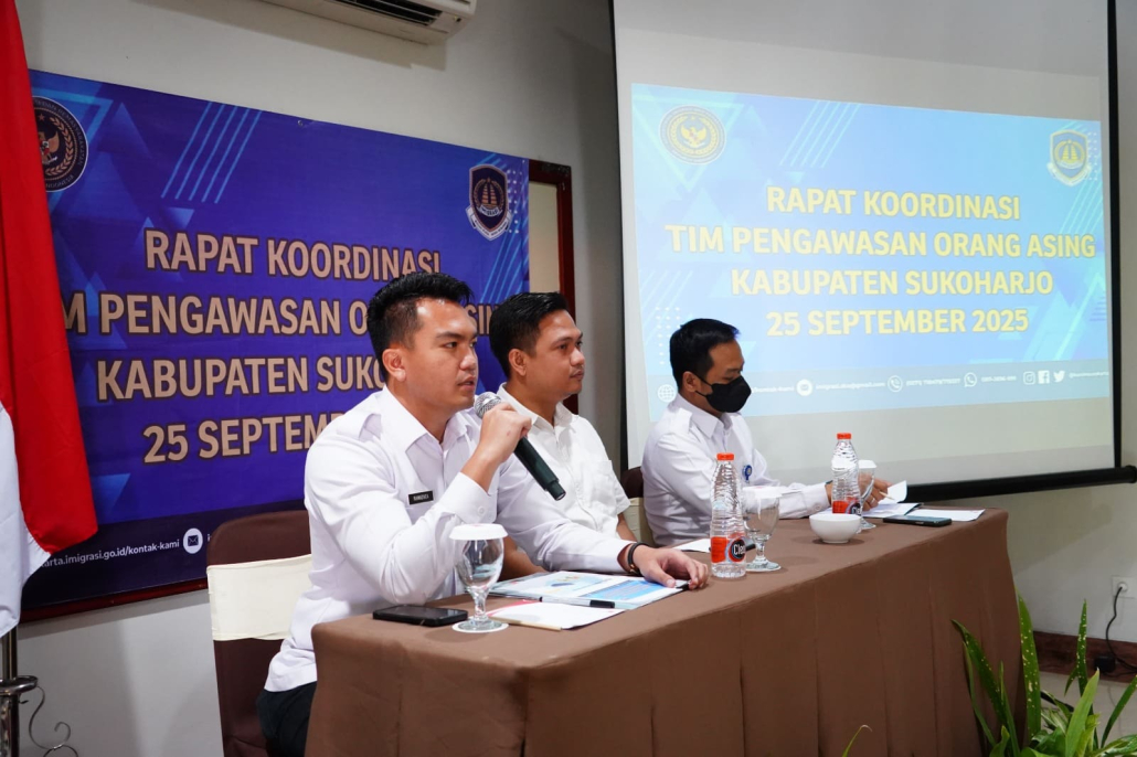 Sukoharjo, 25 September 2025 – Tim Pengawasan Orang Asing (TimPORA) Kabupaten Sukoharjo menggelar Rapat Koordinasi (Rakor) di Hotel Tosan Solo Baru pada Kamis (25/9). Kegiatan ini diinisiasi oleh Kantor Imigrasi Kelas I TPI Surakarta dan diikuti anggota TimPORA dari berbagai unsur, meliputi pemerintah daerah, TNI/Polri, serta lembaga vertikal terkait.