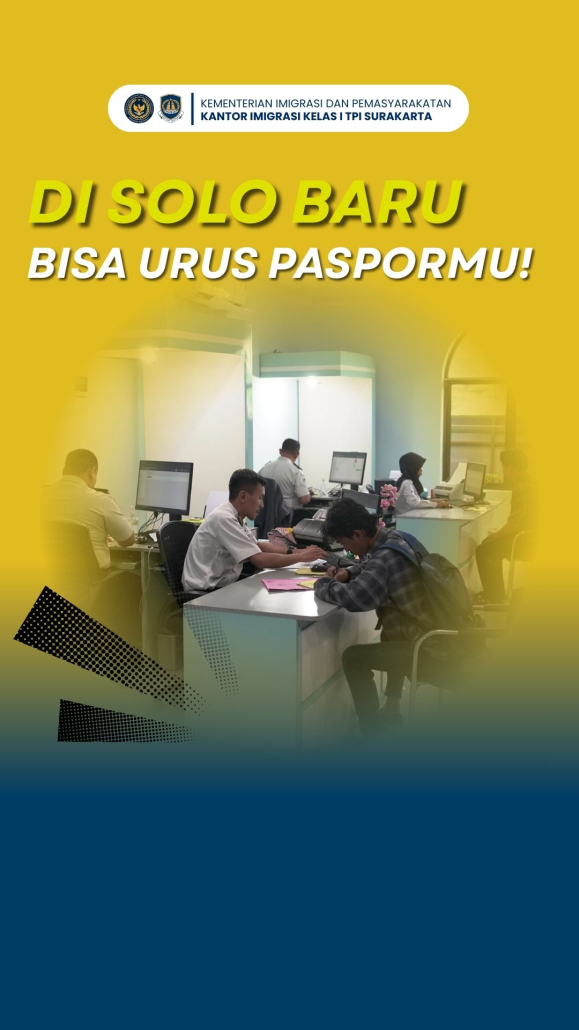 Urus Paspor di Solo Baru?February 13, 2026/0 Comments/in Berita Imigrasi, Berita Kantor, Uncategorized/by Humas Kanim Surakarta https://surakarta.imigrasi.go.id/wp-content/uploads/2026/02/Cover-Reel-New-23.jpg 1920 1080 Humas Kanim Surakarta https://surakarta.imigrasi.go.id/wp-content/uploads/2025/08/Header-Logo-Kanim.png Humas Kanim Surakarta2026-02-13 11:39:502026-02-13 11:40:02Urus Paspor di Solo Baru?